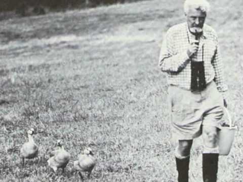 (2) Konrad Lorenz (Wenen, 1903-1989) was een Oostenrijkse zoöloog en ornitholoog. Hij wordt vaak gezien als de grondlegger van de ethologie hoewel hij strikt genomen alleen hielp bij de ontwikkeling van een aanpak die begonnen werd door onder andere zijn leraar Oskar Heinroth. Konrad bestudeerde instinctief gedrag bij dieren. In 1973 ontving Lorenz samen met Karl von Frisch en Niko Tinbergen de Nobelprijs voor de Fysiologie of Geneeskunde.