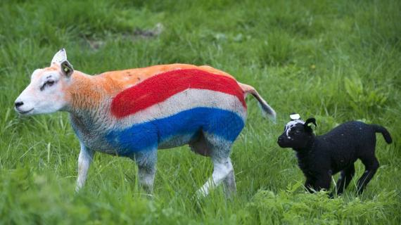 Een wit schaap heeft zich kleurrijker en opvallender laten/willen maken