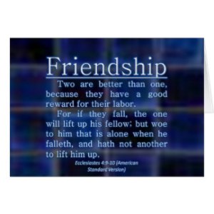 (…) 9 Twee zijn beter dan één, omdat zij een goede beloning hebben bij hun zwoegen. 10 Want, indien zij vallen, dan richt de een de ander weer op; maar wee de éne, die valt zonder dat de/een ander die éne weer overeind kan helpen! (Uit Prediker 4)
