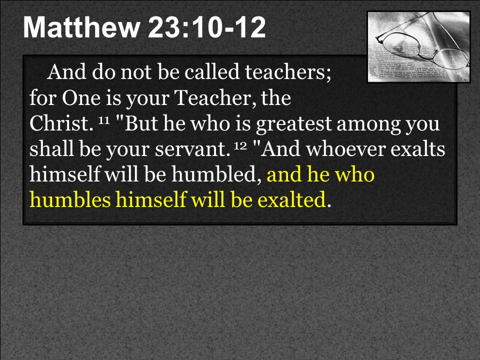 (…) 10 Laat u ook geen leiders noemen, want één is uw Leidsman, de Christus. 11 Maar wie de belangrijkste onder jullie is, zal jullie dienaar zijn. (Uit Matteüs 23)