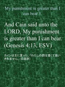 (…) 13 Toen zei Kaïn tot de Here: Mijn misdaad is te groot om de straf te dragen. (a)