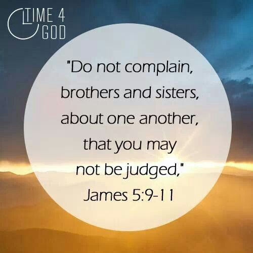 (…) 9 Klaag niet over elkaar, broeders en zusters, want daarmee roept u het oordeel over u af. Bedenk dat de rechter voor de deur staat. (Uit Jakobus 5)