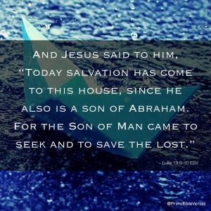 En Zacheüs was een man die goed rekenen kon en goed bij zijn positieven was toen hij zijn woorden sprak en beloftes aflegde. Hij gaf in zijn blijdschap maar niet alles weg, maar “slechts” de helft van zijn vermogen. En indien hij wist en besefte en toegeven moest dat hij velen had afgeperst, dan had hij wel een wat zuiniger vergoeding in het vooruitzicht gesteld dan een viervoudige! En Jezus noemt hem “ook een zoon van Abraham“. Deze Jood, die door velen van zijn broeders was afgeschreven en die naar hun inzicht al lang verwijderd was uit het register van het komende Messiasrijk.