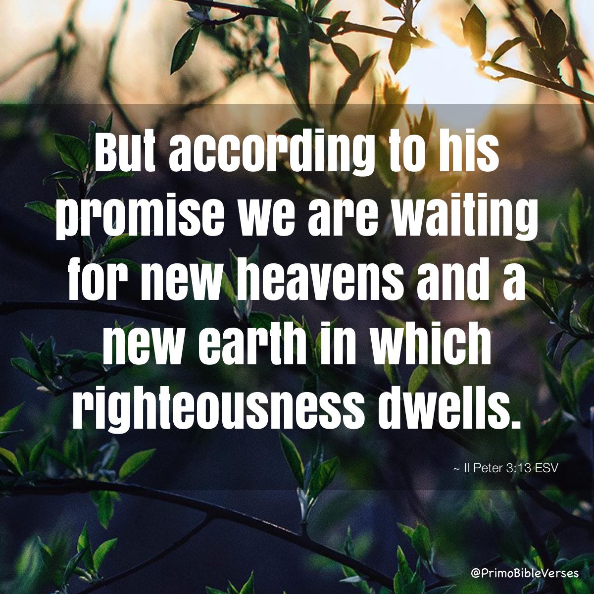 (…) Wij verwachten echter naar Zijn belofte nieuwe hemelen en een nieuwe aarde, waar gerechtigheid woont. (2 Petrus 3 : 13)