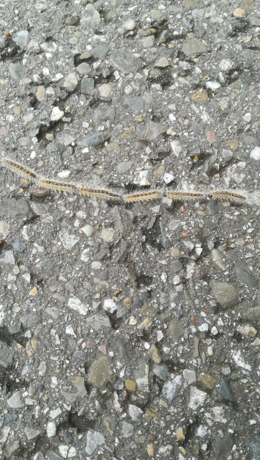 Dinsdagmorgen ontdekte ik tijdens het wandelen een processie van rupsen op het fietspad en voor mij was het de eerste keer dat ik zo’n rijtje van de eikenprocessierups aan de wandel zag en dat ook nog op een foto (smartphone) kon vastleggen.