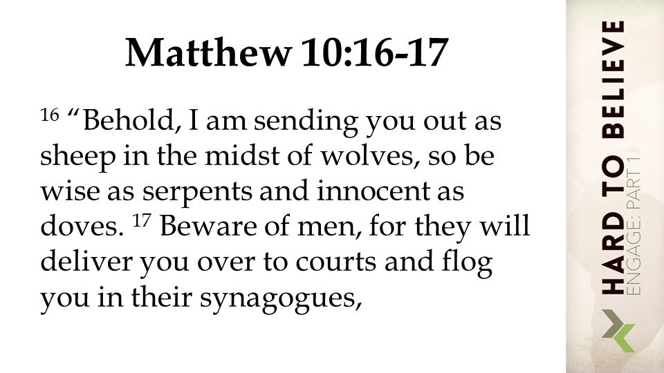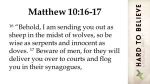 (…) Pas op voor de mensen, want ze zullen je voor het gerecht brengen…