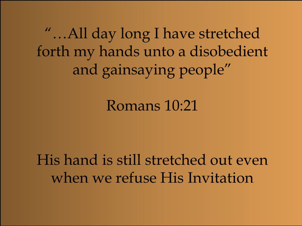 …All day long I have stretched forth my hands unto a disobedient and gainsaying people Romans 10:21. His hand is still stretched out even when we refuse His Invitation. Even when.