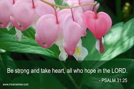 Allen die uw hoop vestigt op de HEER: wees sterk en houd moed. (Uit Psalm 31)