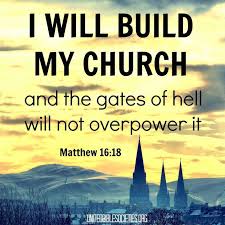 ‘Op deze rots zal ik Mijn gemeente bouwen, en de poorten der hel zullen haar niet overweldigen’ (Mattheüs 16:18, weergave DB 1545).