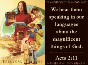 (…) – wij allen horen hen in in onze eigen taal spreken over Gods grote daden.