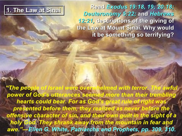 “En het hele volk [hoorde en] zag de donder en de bliksem, en het geluid van de bazuin en de rokende berg. Toen zij dit echter zagen, vluchtten zij en stonden van verre, en zeiden tegen Mozes: Spreekt u met ons, wij zullen gehoorzamen, en laat God niet met ons spreken, anders zouden wij sterven.” (Exodus 20 : 18-19, weergave DB 1545).