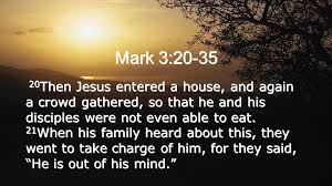 Jezus moet heel wat opschudding hebben veroorzaakt om dergelijke beoordelingen uit te lokken. Je bloedeigen familie zal je maar voor gek verklaren! Het doet vermoeden hoe zwaar de confrontaties zijn geweest tussen Jezus en de religieuze formalisten met hun verlammende en ziekmakende structuren en systemen.