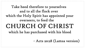 (…) 26 Daarom verklaar ik u op de dag van heden, dat ik rein ben van ieders bloed; 27 want ik heb niet nagelaten u al de raad van God te verkondigen. 28 Ziet dan toe op uzelf en op de hele kudde, waarover de heilige Geest u tot opzieners gesteld heeft, om de gemeente van God te weiden, die Hij Zich door het bloed van zijn Eigen Zoon verworven heeft. (Uit Handelingen 20)