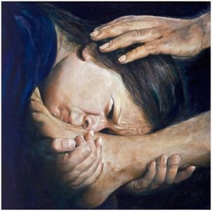 ‘En zie, er was een vrouw in de stad, die een zondares was, toen zij hoorde dat Hij aan tafel zat in het huis van de farizeeër, bracht zij een [albasten] fles met zalfolie, en kwam achter Hem tot Zijn voeten, en weende, en begon Zijn voeten nat te maken met tranen, en ze te drogen met het haar van haar hoofd, en kuste Zijn voeten, en zalfde ze met de zalfolie’ (Lukas 7 : 37-38, weergave DB 1545).