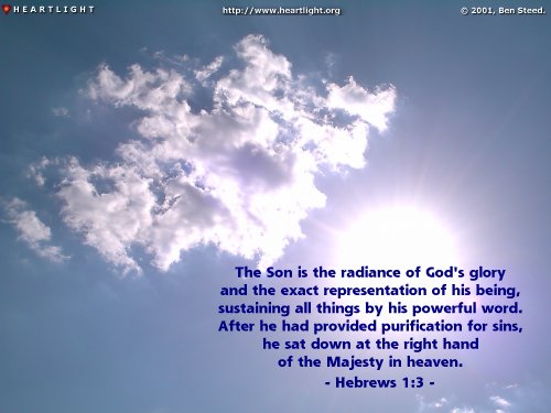(…) 3 Hij, Die de afstraling van Gods heerlijkheid is en de afdruk van Zijn zelfstandigheid, Die alle dingen draagt door Zijn krachtig woord, heeft, nadat Hij de reiniging van onze zonden door Zichzelf tot stand had gebracht, Zich gezet aan de rechterhand van de Majesteit in de hoogste hemelen. 4 Hij is zoveel meer geworden dan de engelen als de Naam die Hij als erfdeel ontvangen heeft, voortreffelijker is dan die van hen. (Uit Hebreeën 1)