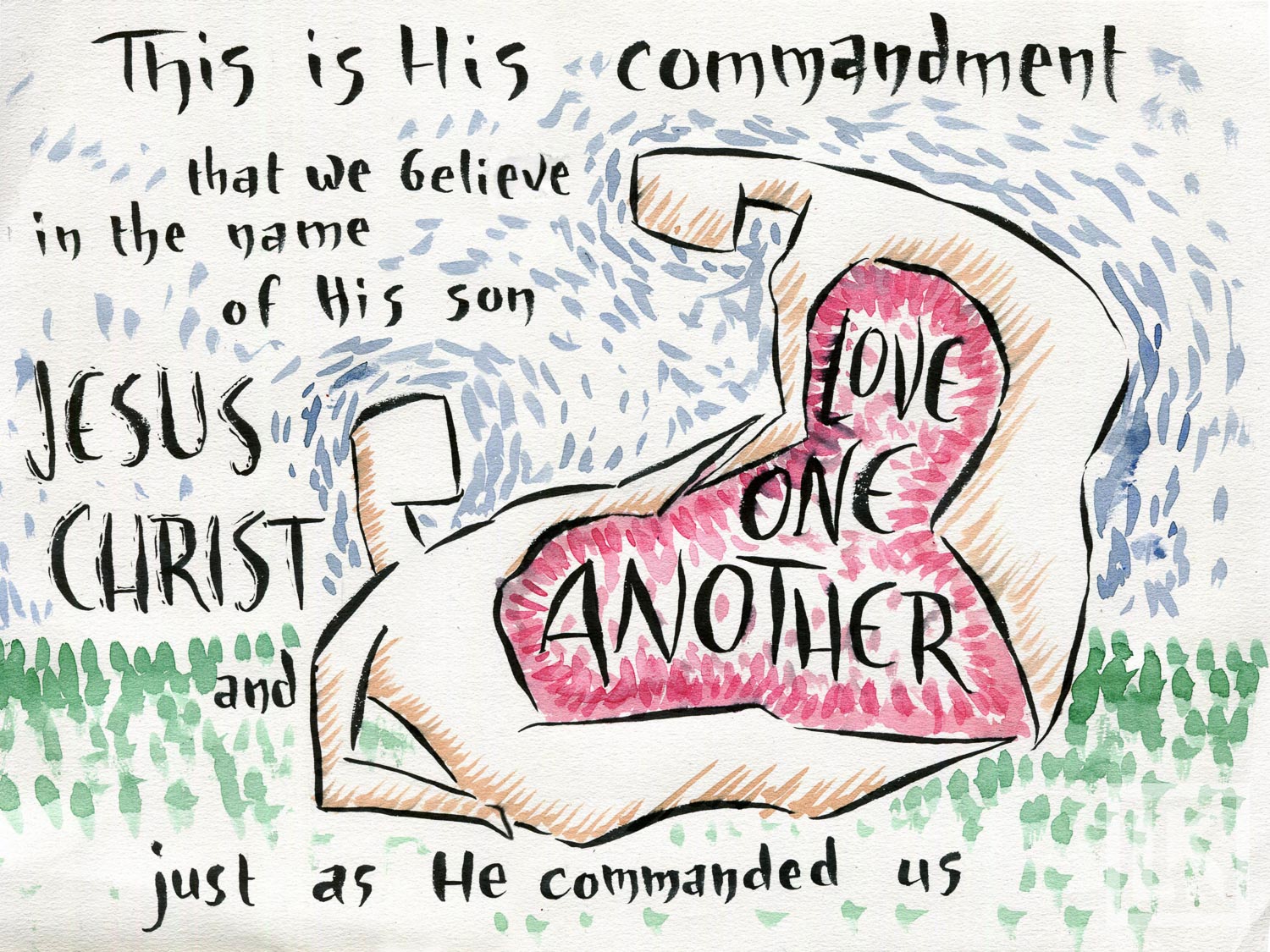 (2) Niet vanzelf, maar daar wil de Liefde woning maken wanneer we luisteren naar Zijn stem: 23 Dit is zijn gebod: dat we geloven in de naam van Zijn Zoon Jezus Christus (a) en elkaar liefhebben (b), zoals Hij ons heeft opgedragen. 24 Wie zich aan zijn geboden houdt blijft in God, en God blijft in Hem. Dat Hij in ons blijft, weten we door de Geest die Hij ons heeft gegeven. (Uit 1 Johannes 3/Johannes 15 : 12)