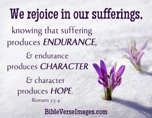 (…) 3 En dit niet alleen, maar wij roemen ook in de verdrukkingen, omdat wij weten dat de verdrukking volharding teweegbrengt, 4 en de volharding ondervinding en de ondervinding hoop. 5 En de hoop beschaamt niet, omdat de liefde van God in onze harten uitgestort is door de Heilige Geest, Die ons gegeven is. (Uit Romeinen 5)