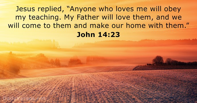 ‘Jezus antwoordde en sprak tot hem: Wie Mij liefheeft, die zal Mijn Woord bewaren – en Mijn Vader zal hem liefhebben, en Wij zullen tot hem komen en woning bij hem maken’ (Johannes 14 : 23, weergave DB 1545).