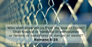 (…) 31 Wat moeten wij hier verder over zeggen? Als God voor ons is, wie kan dan tegen ons zijn? 32 Zal hij, Die zijn eigen Zoon niet heeft gespaard, maar Hem omwille van ons allen heeft prijsgegeven, ons met Hem niet alles schenken? 33 Wie zal Gods uitverkorenen aanklagen? God zelf spreekt hen vrij. 34 Wie zal hen veroordelen? Christus Jezus, die gestorven is, meer nog, die is opgewekt en aan de rechterhand van God zit, pleit voor ons. 35 Wie (of wat) zal ons (dan nog kunnen) scheiden van de liefde van Christus? (Uit Romeinen 8)