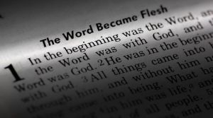 (…) In den beginne was het Woord en het Woord was bij God en het Woord was God. Dit was in den beginne bij God. Alle dingen zijn door het Woord geworden en zonder dit is geen ding geworden, dat geworden is. (Uit Johannes 1 : 1-3)