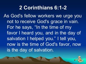 (…) 1 Als Gods medewerkers sporen wij u dan ook aan: laat de goedheid die hij U bewijst niet tevergeefs zijn. 2 God zegt: ‘Wanneer de tijd daarvoor gekomen is, luister Ik naar je, op de dag van de redding help Ik je.’ Nu is de tijd daarvoor gekomen, nu is de dag van de redding. (Uit 2 Korintiërs 6)