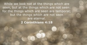 Uit 2 Korintiërs 4: (…) 10 We dragen in ons bestaan altijd het sterven van Jezus met ons mee, opdat ook het leven van Jezus in ons bestaan zichtbaar wordt. 11 Wij levenden worden altijd omwille van Jezus aan de dood prijsgegeven, opdat in ons sterfelijke bestaan ook het leven van Jezus zichtbaar wordt. 12 Zo is in ons de dood werkzaam, en in u het leven. 13 Er staat geschreven: ‘Ik bleef vertrouwen, daardoor kon ik spreken.’ In datzelfde vertrouwen spreken ook wij, omdat we geloven 14 en weten dat Hij die de Heer Jezus heeft opgewekt ook ons, net als Jezus, zal opwekken en ons samen met u naar Zich toe zal voeren. 15 Dit alles gebeurt omwille van u, zodat Gods goedheid, die zich door steeds meer mensen verbreidt, ook tot steeds meer dankzegging leidt, tot eer van God. 16 Daarom verzaken wij onze plicht niet. Ook al gaat ons uiterlijke bestaan verloren, ons innerlijke bestaan wordt van dag tot dag vernieuwd. 17 De geringe last die we tijdelijk te dragen hebben, brengt ons een eeuwige luister, die alles omvat en alles overtreft. 18 Wij richten ons niet op de zichtbare dingen maar op de onzichtbare, want de zichtbare dingen zijn tijdelijk, de onzichtbare eeuwig.