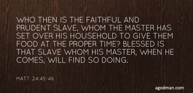 Opgemerkt: De eer van God is mensen (steeds weer) te redden! (zie o.a. Psalm 106) Maar, wat als de geredden zich gaan gedragen als mensen die hun redding (natuurlijk) waard waren en steeds meer waard weten te maken en die zich daarom zelfs ook in de samenkomsten niet (meer) gedragen als onnutte slaven, die daar vooral heel goed luisteren en dáár en daarna precies doen wat hun meester hen heeft opgedragen, namelijk anderen dienen, zoals Hij dat ook gedaan heeft en doet. Maar dat ze/we daar en elders gaan feestvieren en het er van nemen en andere slaven in deze wereld beginnen te minachten en slaan… Dan zijn en maken deze ‘geredde slaven’ zich een onderkomen en dienst in en buiten het huis van hun heer niet waard (Zie Matteüs 24 : 45-51 en Lukas 12 : 41-48).