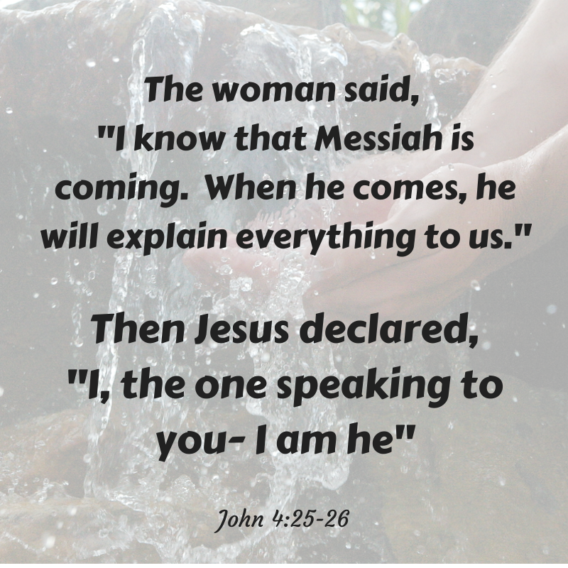 ‘De vrouw zei tegen Hem: Ik weet, dat de Messias komt, die Christus genoemd wordt; wanneer Die komt, zal Hij ons alles verkondigen. (Johannes 4 : 25)