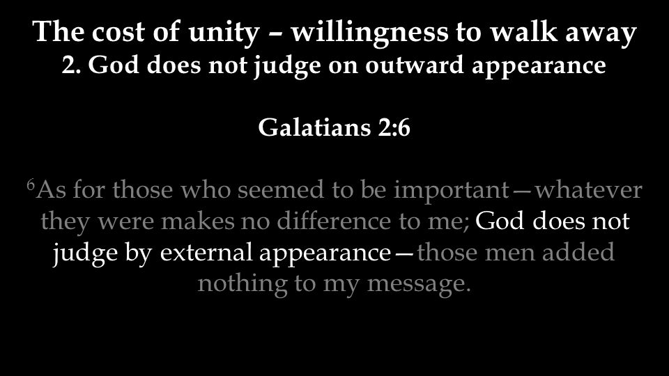 Integendeel, Paulus heeft niets met de ‘posities’ van de mensen daar in Jeruzalem, die mogelijk anderen – zoals de ‘schijnapostelen waarover Paulus het even eerder heeft gehad – misschien juist wel graag aan verschillende mensen die daar bijeen waren hadden toegekend, en dat vanwege de wens om ook de leden van de heidengemeenten onder een ‘Joods juk’ te brengen.
