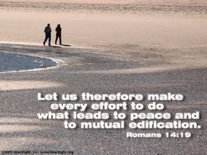 ‘Wees elkaar niets schuldig, behalve liefde, want wie de ander liefheeft, heeft de gehele wet vervuld. Want: ‘Pleeg geen overspel, pleeg geen moord, steel niet, zet uw zinnen niet op wat van een ander is’ – deze en alle andere geboden worden samengevat in deze ene uitspraak: ‘Heb uw naaste lief als uzelf.’ De liefde berokkent uw naaste geen kwaad, dus de wet vindt zijn vervulling in de liefde.‘ (Romeinen 13 : 8-10)