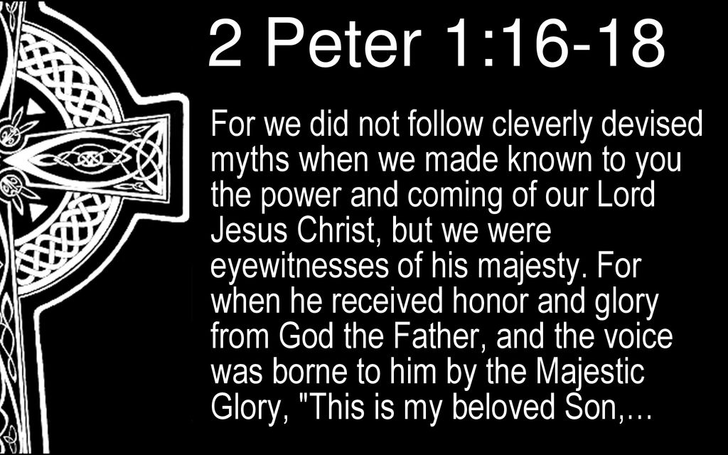 (…) Een andere plaats, waar ik de vinger bij wil leggen, is Markus 9 : 6. ‘U bent de Christus, de beloofde Verlosser’, had Petrus begrepen en vrijmoedig beleden. En terecht. Precies goed gezegd! Maar ze mochten het zo nog niet rond bazuinen. Eerst zou Hij nog moeten lijden. Dat moest echt gebeuren, dat mocht Petrus niet afweren. Maar de heerlijkheid komt daarna. En daarvan mag Petrus met twee andere discipelen ook al een glimp opvangen op die hoge berg. Op dat moment weet Petrus niet meer wat hij zeggen of zwijgen moet, want, zij waren zeer bevreesd. Geen wonder: voor de schittering van hemelse heerlijkheid en dat niet in een beschouwing maar in het echt! Later prent de apostel de gemeente in: Wij zijn geen mythen gevolgd in ons spreken over de kracht en de komst in heerlijkheid van onze Heer Jezus Christus. Maar we zijn ooggetuigen geweest van Zijn majesteit, toen we met Hem op de heilige berg waren. Wie zou niet vrezen met diepe eerbied en ontzag voor de HERE. Zeg het maar in die bepaalde vorm, HERE, die vorm, die we voor God reserveren.