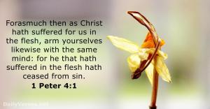 ‘Omdat nu Christus voor ons heeft geleden in het vlees, wapen u dan ook met diezelfde gezindheid; want wie in het vlees lijdt houdt op met de zonde‘… (1 Petrus 4 : 1)