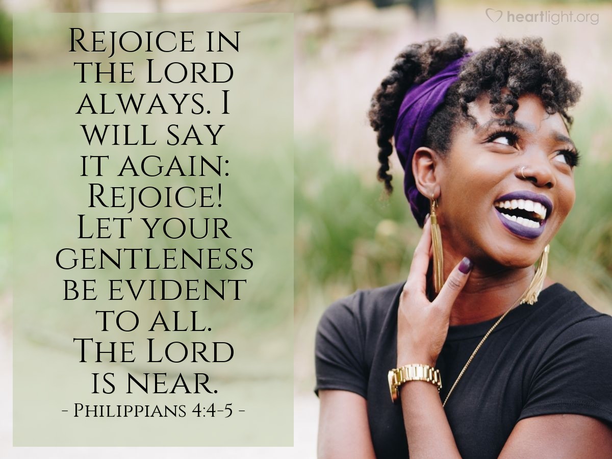 Laat iedereen u kennen als vriendelijke mensen.‘ (Uit Filippenzen 4 : 4-9)
