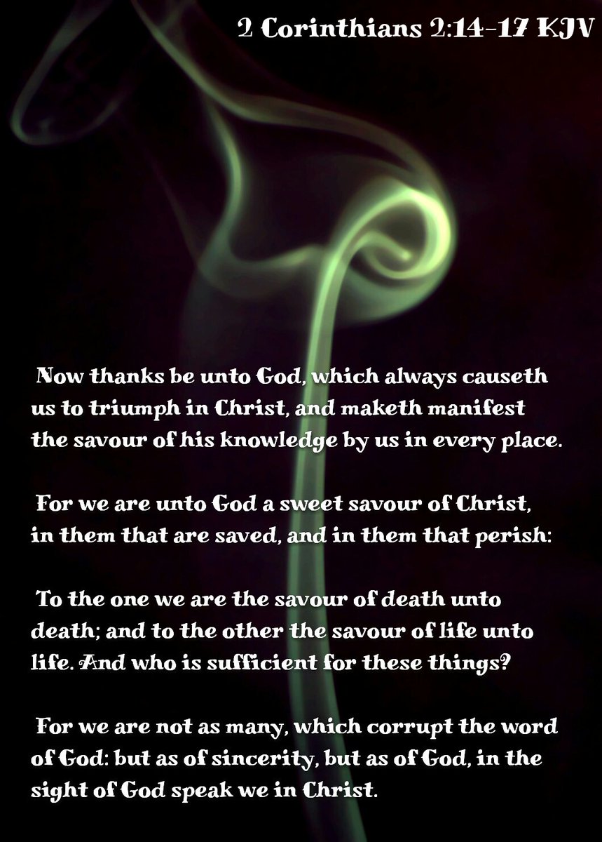 (2) Zie ook 2 Korintiërs 2 : 14-17: ‘…Want wij zijn een geur van Christus… En wie is tot zulk een taak bekwaam… maar wij spreken in Christus uit zuivere bedoelingen, ja, op gezag van God en voor Gods aangezicht.‘