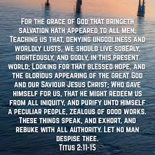 ‘Christus Jezus heeft zichzelf voor ons gegeven om ons van alle zonde vrij te kopen, ons te reinigen en ons tot zijn volk te maken, dat vol ijver is om het goede te doen.‘