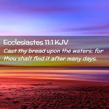 Werp uw brood uit op het water, en je zult het vinden na vele dagen. Geen aardse macht begeren wij: dié gaat al héél ras verloren! Prediker 11 vers 1 is een hoogtepunt!