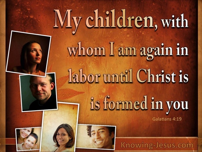 “Kinderen, zolang Christus geen gestalte in u krijgt, doorsta ik telkens barensweeën om u. Hoe graag zou ik bij u willen zijn en op een andere toon met u spreken, want ik maak me zorgen over u.‘ (Paulus in Galaten 4 de verzen 19-20)