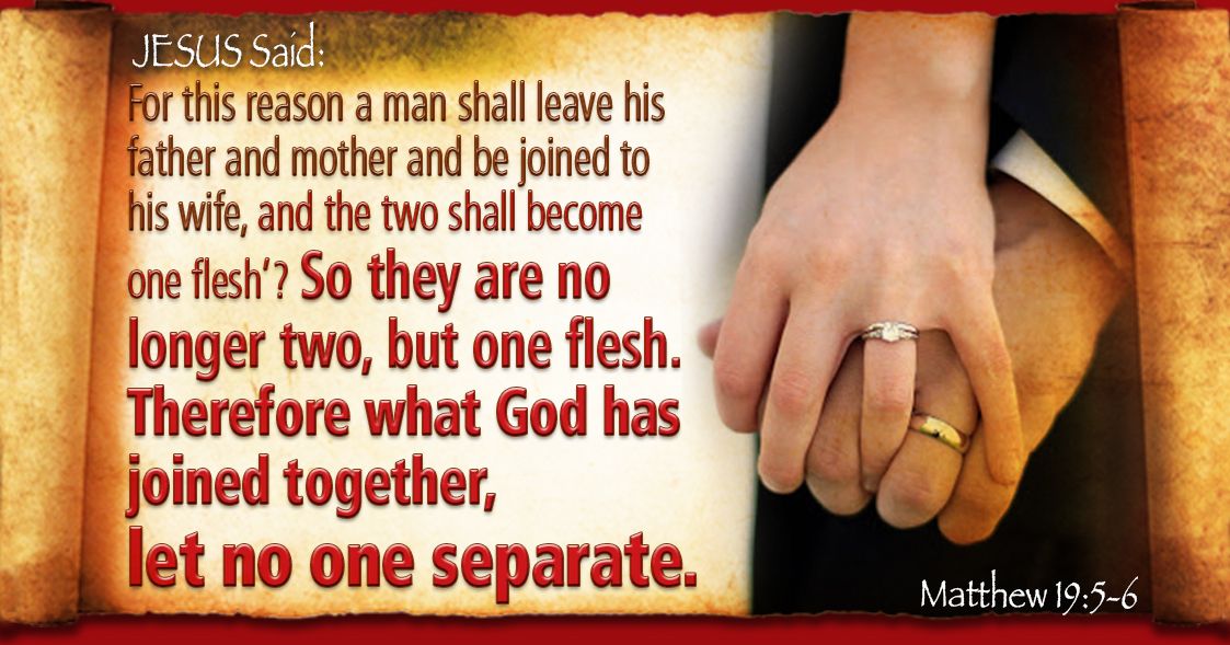Het huwelijk begint van onze kant met een eed, waaraan we ons levenslang hebben te houden, terwijl van Gods kant de verzekering komt: ‘Hetgeen dan God samengevoegd heeft scheide de mens niet.‘