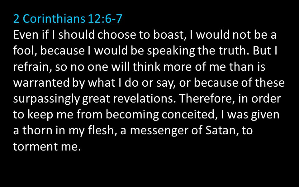 ‘En zelfs al zou ik hoog van mezelf willen opgeven, dan nog zou ik geen dwaas zijn, want ik zou de waarheid spreken. Maar ik zie er vanaf, want ik wil beoordeeld worden op grond van wat men van mij hoort en *ziet (zichtbaar/controleerbaar!), niet op grond van de uitzonderlijke openbaringen die ik heb gekregen.‘ (Uit 2 Korintiërs 12 uit de verzen 6-7)