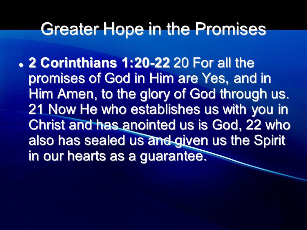 ‘Immers, zovele beloften van God als er zijn, die zijn in Hem ja en in Hem amen, tot verheerlijking van God door ons. En Hij Die ons met u bevestigt in Christus en ons gezalfd heeft, is God, Die ons ook verzegeld heeft en het onderpand van de Geest in onze harten gegeven heeft.‘ (Uit 2 Korintiërs 1 de verzen 20-22)