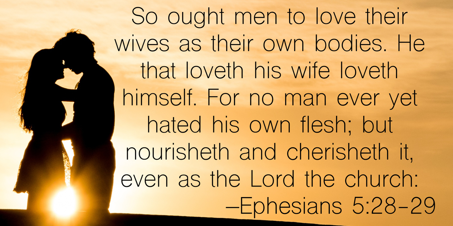‘Wie zijn eigen vrouw liefheeft, heeft zichzelf lief; want niemand haat ooit zijn eigen vlees, maar hij voedt het en koestert het, zoals Christus de gemeente, omdat wij leden zijn van Zijn lichaam.‘ (Uit Efeziërs 5 uit de verzen 28-29)