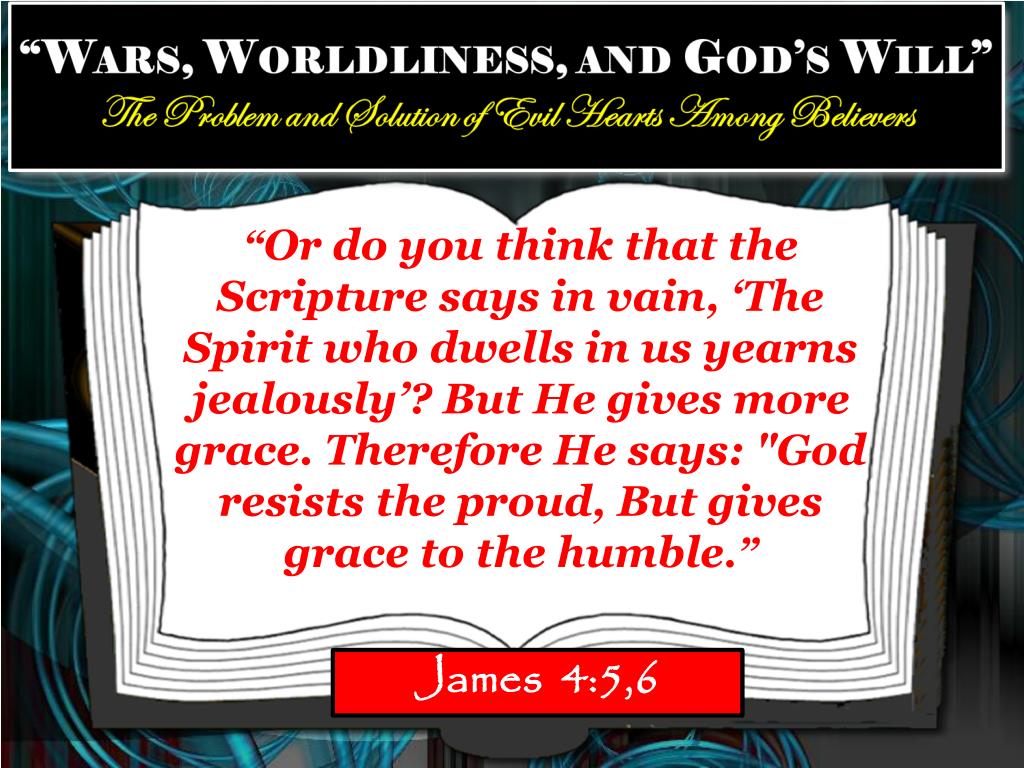 De apostel Jakobus schrijft over bidden en gebedsverhoring: ‘… Trouwelozen! Beseft u niet dat vriendschap met de wereld vijandschap jegens God betekent? Wie bevriend wil zijn met de wereld, maakt zich tot vijand van God. Denk toch niet dat dit loze woorden zijn in de Schrift: “Hij Die ons het leven gaf, maakt er vurig aanspraak op; maar de genade die Hij schenkt is nog groter.” Daarom staat er: “God keert zich tegen de hoogmoedigen, maar de nederigen schenkt Hij genade.” …