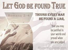 ‘… Maar het blijve: God waarachtig en ieder mens leugenachtig, gelijk geschreven staat: Opdat Gij gerechtvaardigd wordt in uw woorden, en overwint in uw rechtsgedingen.‘ (Uit Romeinen 3 uit vers 4)