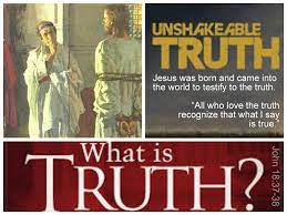 ‘Jezus zei: “Ik ben geboren en naar de wereld gekomen om van de waarheid te getuigen, en ieder die de waarheid is toegedaan, luistert naar wat Ik zeg.” Hierop zei Pilatus: “Maar wat is waarheid?“‘ (Uit Johannes 18 uit de verzen 36-38)