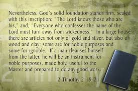 ‘En toch staat ongeschokt het hechte fundament Gods met dit merk: De Here kent de zijnen, en: Een ieder, die de naam des Heren noemt, breke met de ongerechtigheid.’ (Uit 2 Timoteüs 2 vers 19)