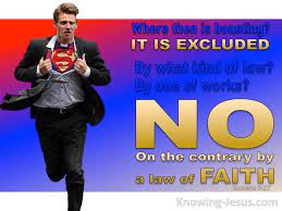 ‘Kunnen wij ons dan nog ergens op laten voorstaan? Dat is uitgesloten. En door welke wet komt dat? Door de Wet die eist dat wij hem naleven? Nee, door de wet die eist dat je gelooft.’ (Uit Romeinen 3 vers 27)