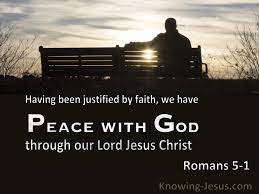 ‘We zijn dus als rechtvaardigen aangenomen op grond van ons geloof en leven in vrede met God door onze Heer Jezus Christus.’ (Uit Romeinen 5 vers 1)