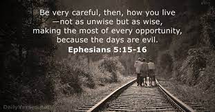 ‘Ziet dus nauwlettend toe, hoe gij wandelt, niet als onwijzen, doch als wijzen, u de gelegenheid ten nutte makende, want de dagen zijn kwaad. Weest daarom niet onverstandig, maar tracht te verstaan, wat de wil des Heren is. En bedrinkt u niet aan wijn, waarin bandeloosheid is, maar wordt vervuld met de Geest, en spreekt onder elkaar in psalmen, lofzangen en geestelijke liederen, en zingt en jubelt de Here van harte, dankt te allen tijde in de naam van onze Here Jezus Christus God, de Vader, voor alles, en weest elkaar onderdanig in de vreze van Christus.’ (Uit Efeziërs 5 de verzen 15-21)