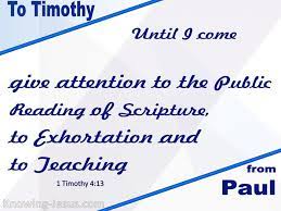 NB. Daarom gaf Paulus de jonge Timoteüs de opdracht om in de samenkomsten zich toe te leggen op het voorlezen uit ‘de Schrift’ (Zie 1 Timoteüs 4 de verzen 11-16)