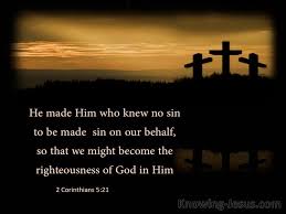 ‘Hem, die geen zonde gekend heeft, heeft Hij voor ons tot zonde gemaakt, opdat wij zouden worden gerechtigheid Gods in Hem.’ (Uit 2 Korintiërs 5 vers 21)